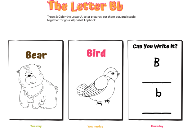 A 26-week Lapbook project teaches your child the alphabet and animals that start with the letter of the week! Learn the alphabet letters, beginning tracing and writing, animals, sensory play, scavenger hunts, and sorting. Create a Lapbook with each week's mini-books for a special keepsake of their first year of homeschooling! Perfect for tots that want to do "school" but aren't quite ready for a full schedule. Add books and learning videos of your choice to round out their learning time! Simple, but effective!